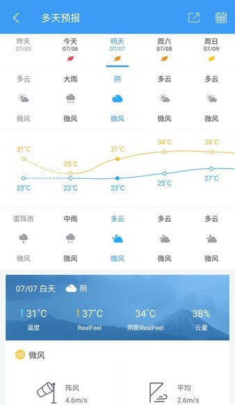 4、内容专业:凝聚专业团队力量与成果,全面提供网格预报、实时预警、分钟级实况及雷达云图、台风路径、专项服务等丰富气象产品。