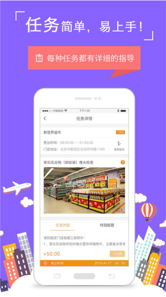登录应用后,用户可以查看周边可接任务,按照要求到达指定位置拍摄并上传照片。任务涉及快消品、电子产品、汽车及金融等多个行业,适应不同兴趣的用户。应用设计注重易用性,新用户也能迅速熟悉操作。平台还设有积分累积机制,积分可用于兑换礼品或提现,让赚钱过程更具互动性。