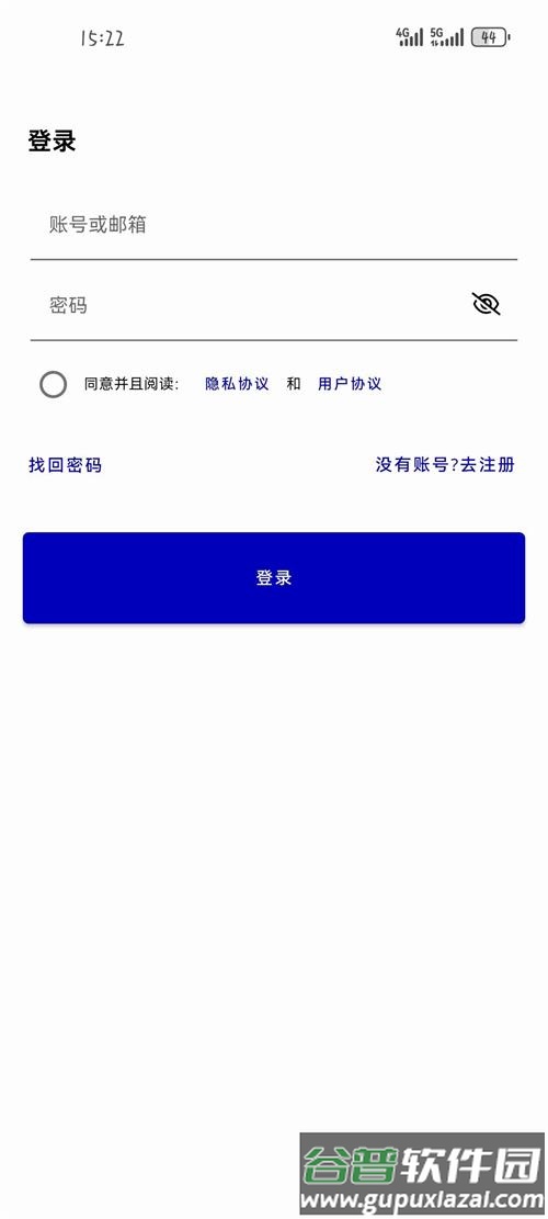 2、进入软件后需完成登录操作,新用户可先行注册账号。