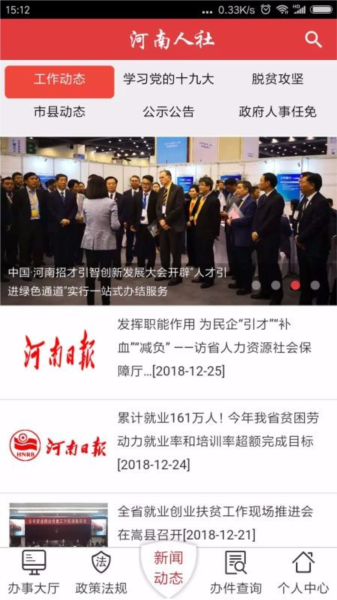 1、在首页新闻动态栏浏览工作动态列表,选择感兴趣的新闻点击阅读;