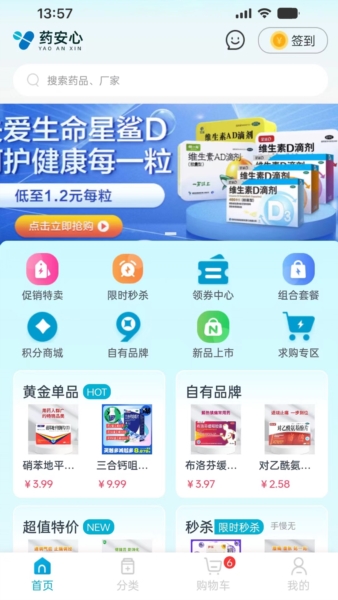 药安心应用结合互联网与医药行业,为药品经营企业搭建高效的B2B采购渠道。平台严格守法运营,与多家知名医药企业合作,保障产品品质。首页设计清晰,药品分类明确,帮助用户迅速完成下单。定期推出的限时秒杀和拼团活动,让用户享受到真实优惠,减轻购药的经济压力。