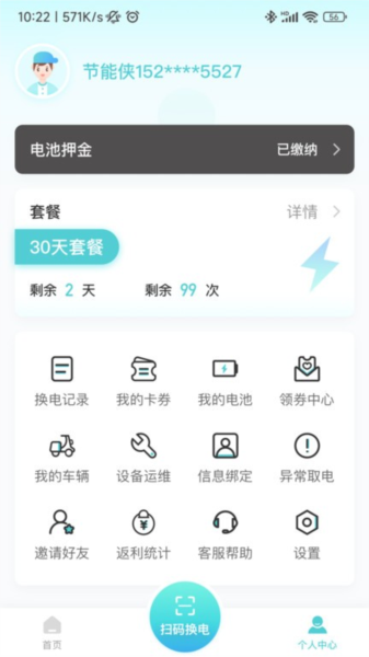 邀请好友:用户可通过个人中心邀请好友加入平台,共同使用换电服务。