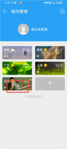 2、在城市列表中选择需要删除的城市,长按该城市名称;