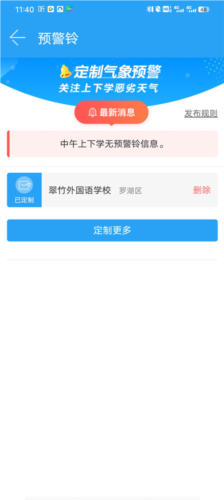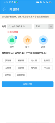 4、完成设置后,当遭遇恶劣天气时,用户便会收到预警铃发出的提示,便于学生和家长提前做好应对准备。