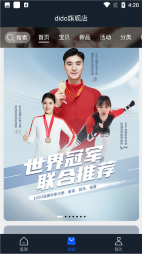 4、进入商城板块,可以浏览dido官方店铺的各类商品与新品动态;通过搜索功能能快速查找特定产品。