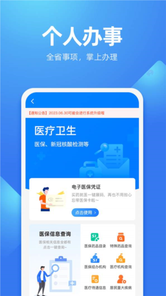 个人办事功能覆盖全省各类事项,均可在掌上完成办理。