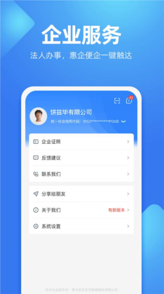 企业服务板块让法人用户能够快速触达所需办理的企业相关事务。