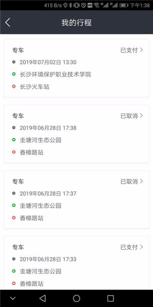 5、进入我的行程页面查看过往订单,点击任一记录可查询该次行程详情。