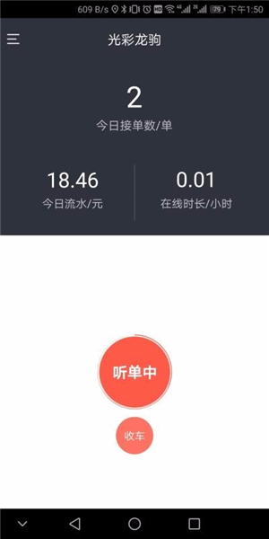 1、打开应用进入听单状态,查看并接收附近推送的订单信息;