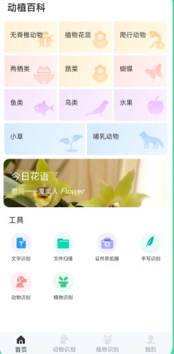 3、拍照识别:提供专用工具,拍摄动植物照片即可识别其种类信息。
