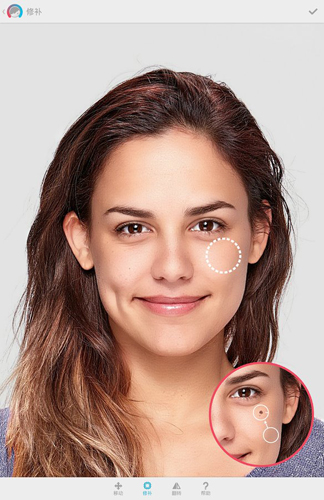 双指缩放画面、单指涂抹,配合橡皮擦修正,步骤简单。先放大画面以便精细处理,再实施磨皮。