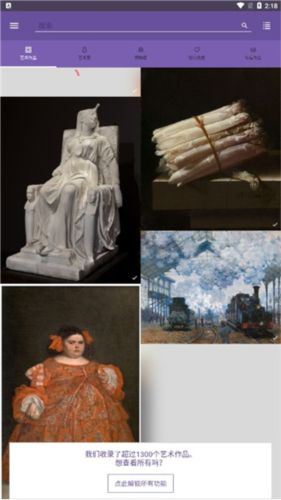 7、即可查看已收录的众多艺术作品列表;