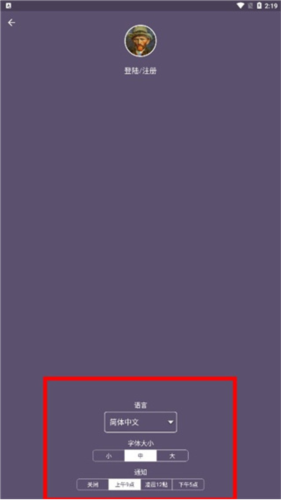 5、在设置中可更改显示语言、调节字体大小,并重新设定通知时间;