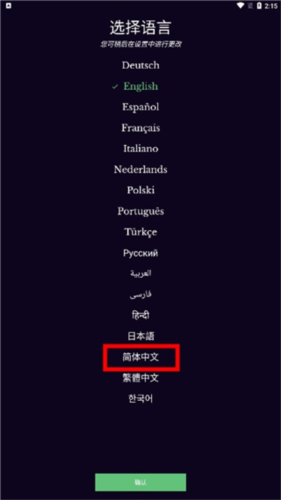 1、安装后首次启动,可选择偏好语言,点击确认进入;