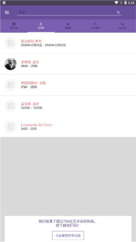 3、你能探索超过2500件杰作收藏,随时查阅700位艺术家传记及500家博物馆的藏品资料;
