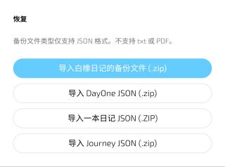 6、如需还原,在页面下方选择恢复方式,导入对应格式的备份文件即可。
