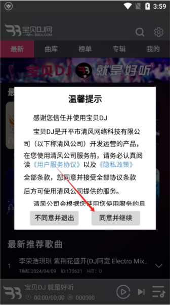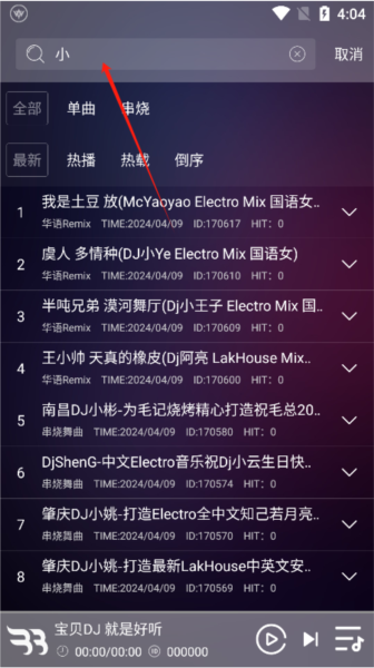 1、打开宝贝DJ音乐网最新版,进入首页浏览各类DJ歌曲,点击选择想要下载的曲目;