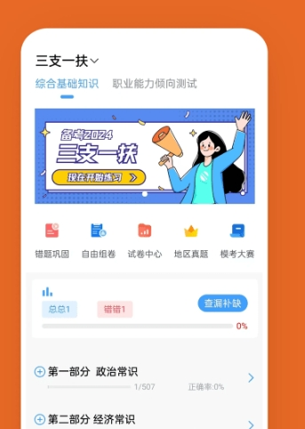 精心设计的章节练习,紧扣新大纲考点,助你进行针对性强化;基于数据的查漏补缺功能,精准定位弱点并推荐巩固习题;自由组卷让你能够按需整合错题、专项与收藏内容,实现个性化复习方案。三支一扶题小宝,是你专属的备考学习助手。