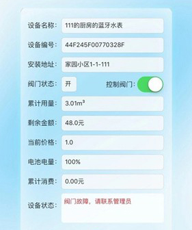 水费管理便捷:用户可随时在线充值缴费,远程查看家庭用水情况。应用设有水费预警功能,及时提醒用户,避免因欠费导致停水。