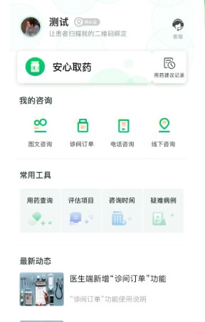 2、在首页查看最新动态,快速掌握软件更新信息,并开展在线问诊工作;