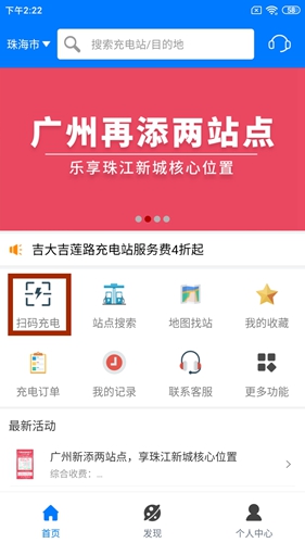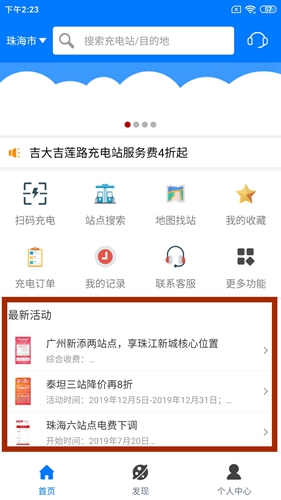 打开软件后,在主页面下方通常可以看到当地电站的推广信息,以珠海市为例,点击进入活动页面。