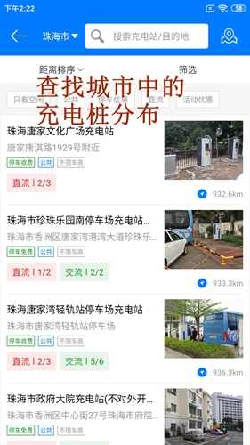 返回主界面,点击站点搜索功能,查看周围可用的充电站位置。