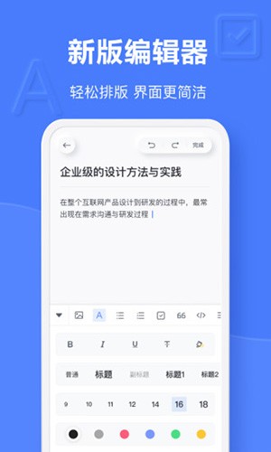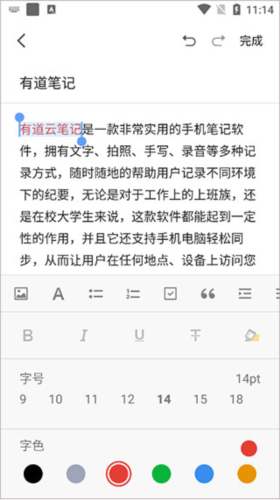 3、选择新建笔记后,可编写标题与正文,并设置文本标记,例如调整文字颜色、字体、字号与对齐方式;