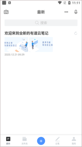 1、在手机上启动有道云笔记最新版,界面如下所示;
