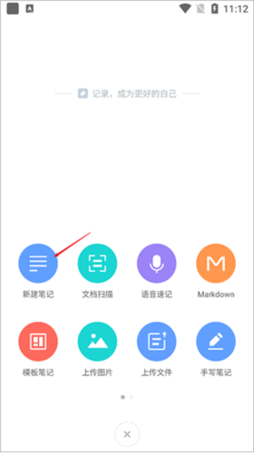 2、点击界面下方的加号按钮,可以新建笔记、进行文档扫描、语音速记、创建Markdown文档或使用模板笔记等;
