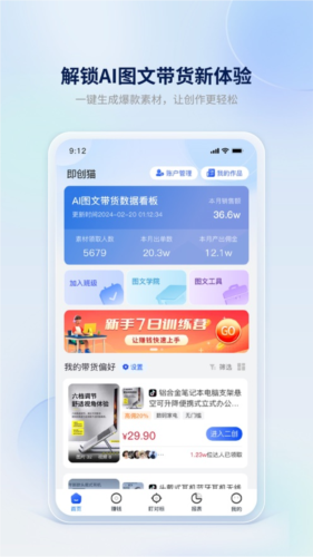 AI智能选品:平台利用AI算法推荐具有潜力与流行趋势的商品,帮助用户筛选适合带货的视频内容;