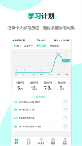 4.清晰展示用户近一周的学习时长与记录,方便随时掌握进度。