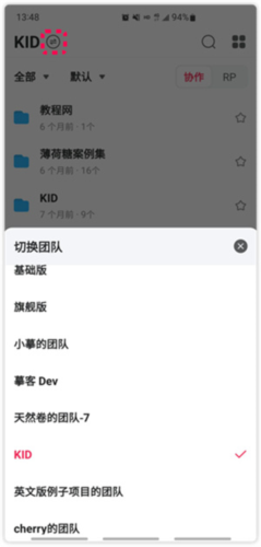 2、登录成功,点击顶部团队名称旁的切换按钮,可在下拉列表中选择查看其他团队的项目。