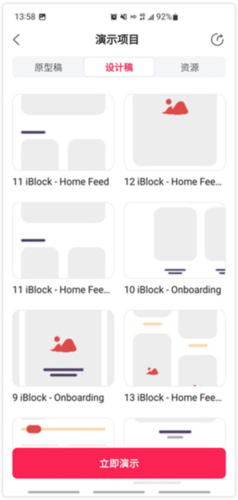 5、进入具体项目后,浏览所有页面;点击立即演示即可查看原型动态效果。