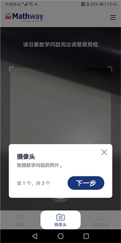 3、通过摄像头拍摄数学题目图片进行识别;