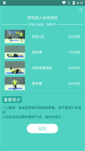 2、运动能力测试主要由几个规定动作组成,完成测试后,用户将获得一份详细的个人运动水平报告;