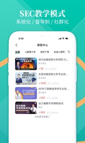 4. 从业者考证支持:快速检索各类心理学专业考证学习内容,覆盖心理咨询师基础培训、心理讲师培训、家庭心理顾问、青少年心理师、1879计划、认知行为催眠、家庭教育指导、儿童注意力训练、沙盘心理分析等多项技能培训课程,为学习者提供全面、专业的辅导服务。