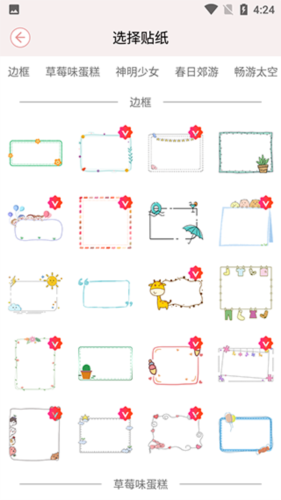 5. 模板中的贴纸元素也可自由替换,应用内提供大量可爱贴纸可供选择;未标注VIP标识的贴纸均为免费素材。