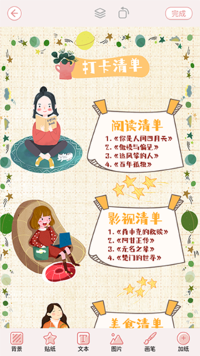1. 画笔与贴纸:提供手绘画布功能,创意灵感随意挥洒;贴纸胶带等素材可自由选择与搭配。