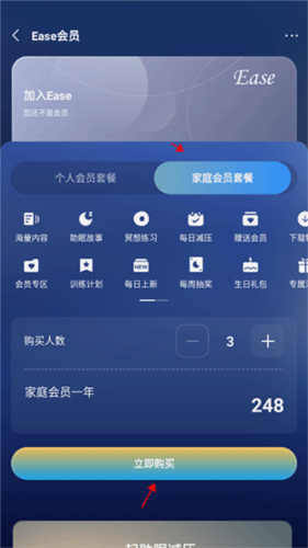 3、右侧为家庭会员套餐,依据家庭人数计算费用,选择人数后即可立即购买。