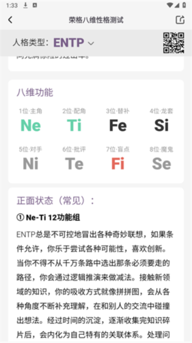3、在性格类型功能中可查看对应性格的详细特征描述;