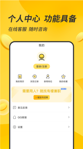 1、提供大量兼职岗位信息,完整展示工作介绍与任职要求;