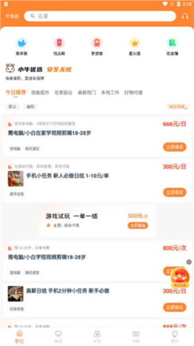 应用内提供大量可在家完成的兼职岗位,薪资待遇优越,操作全程仅需手机,无需外出即可赚取收入。
