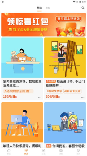 2、进入精选板块,这里汇集了众多可居家完成的兼职,方便用户在空闲时间赚取收入;