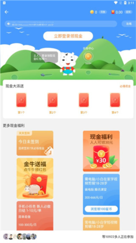 5、点击红包界面,每日登录即可领取相应的现金奖励。