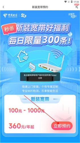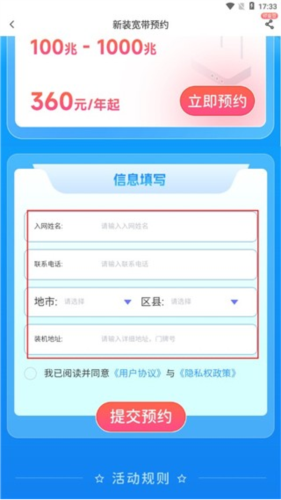 2. 进入详情页查看宽带活动规则及相关说明。
