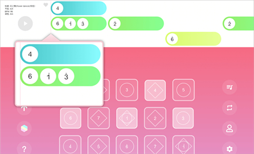 3、点击歌曲标题,稍等片刻乐谱便会加载至练习界面。乐谱分为三行,首行对应键盘的第一排按键。