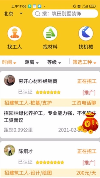 3、支持按时间、距离、等级等维度筛选工种,实现精准查找;