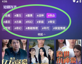 进入剧场板块,点击上方的标签符号,选择喜欢的类别例如热血;