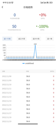 3、进入商品详情后,可查看近一个月、近三个月等不同周期的价格变化曲线。