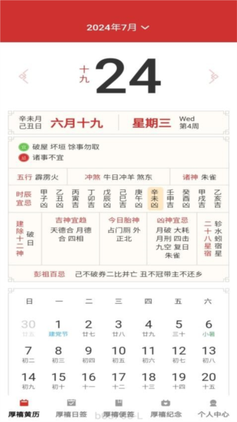 厚禧来福app是一款功能全面的日历工具,它细致呈现农历、阳历与黄历信息,协助用户记录重要纪念日与日常笔记。这款应用致力于服务日常生活的多元场景,无论是规划繁忙工作还是准备特殊日子,都能成为您的得力伙伴。其设计注重实用与便捷,通过丰富的功能为用户提供持续支持。
